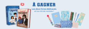 Jouez au jeu-concours pour ne pas manquer cette chance unique de briller, de gagner un kit de rentrée exclusif et de plonger encore plus dans l’univers de nos campus romances de la rentrée.