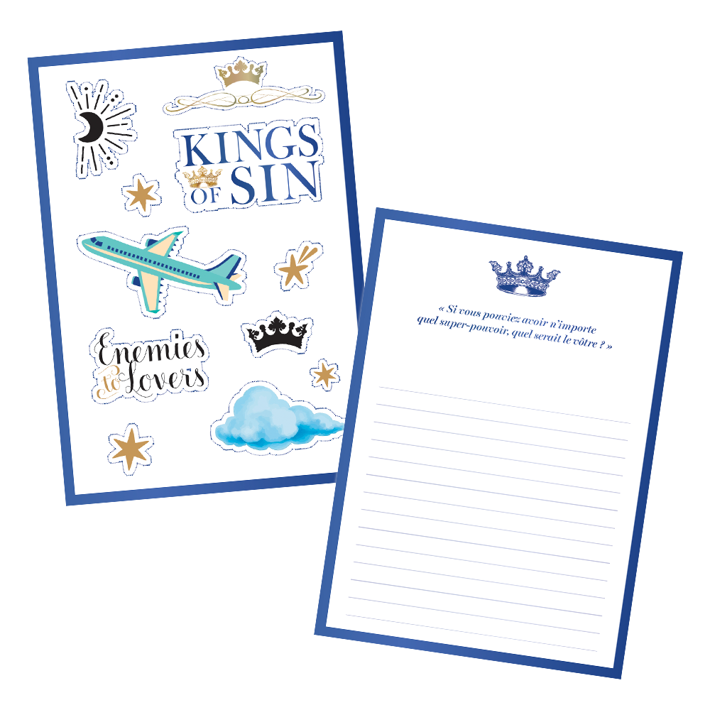 Chapitre bonus,stickers ou exercice d’écriture : nous avons conçu les pages de ces livrets numériques pour en faire votre espace, une fois les tomes de Kings of Sin terminés.